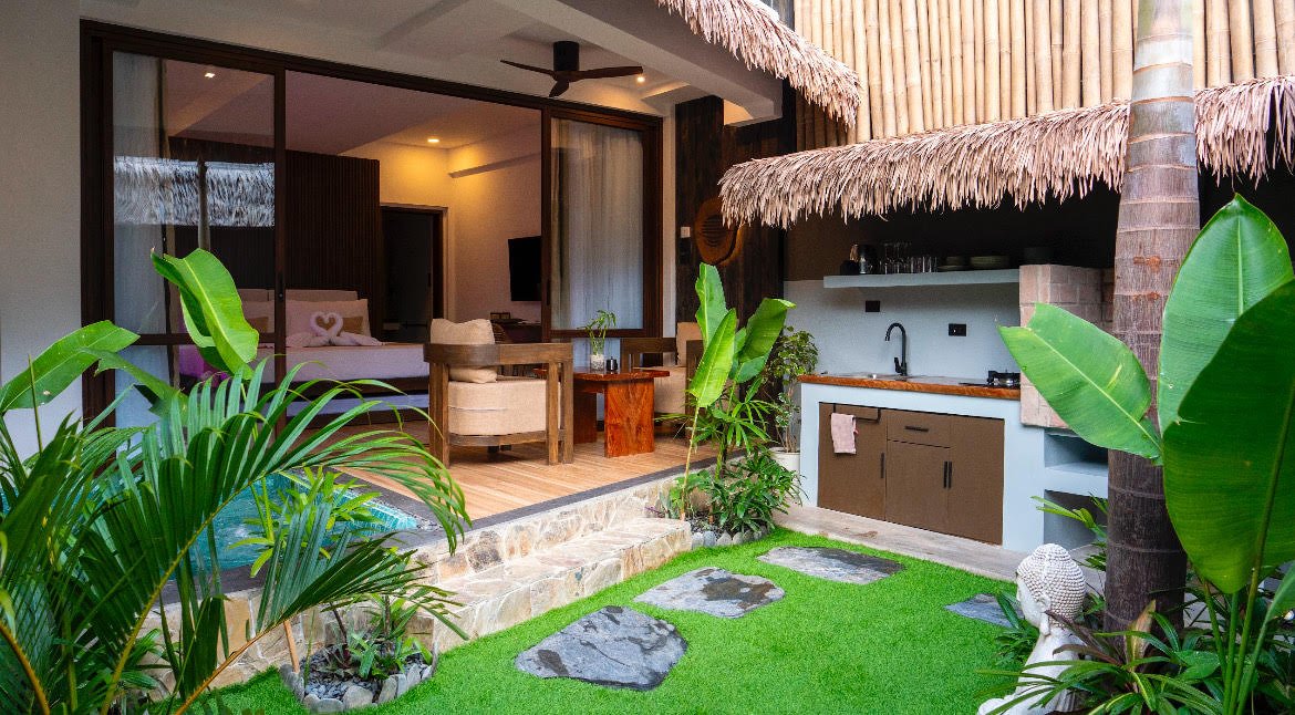 While the villa doesn’t offer the sound of the waves, its close proximity to the beach allows you to enjoy the sea breeze and the natural charm of Corong Corong just a few steps away.